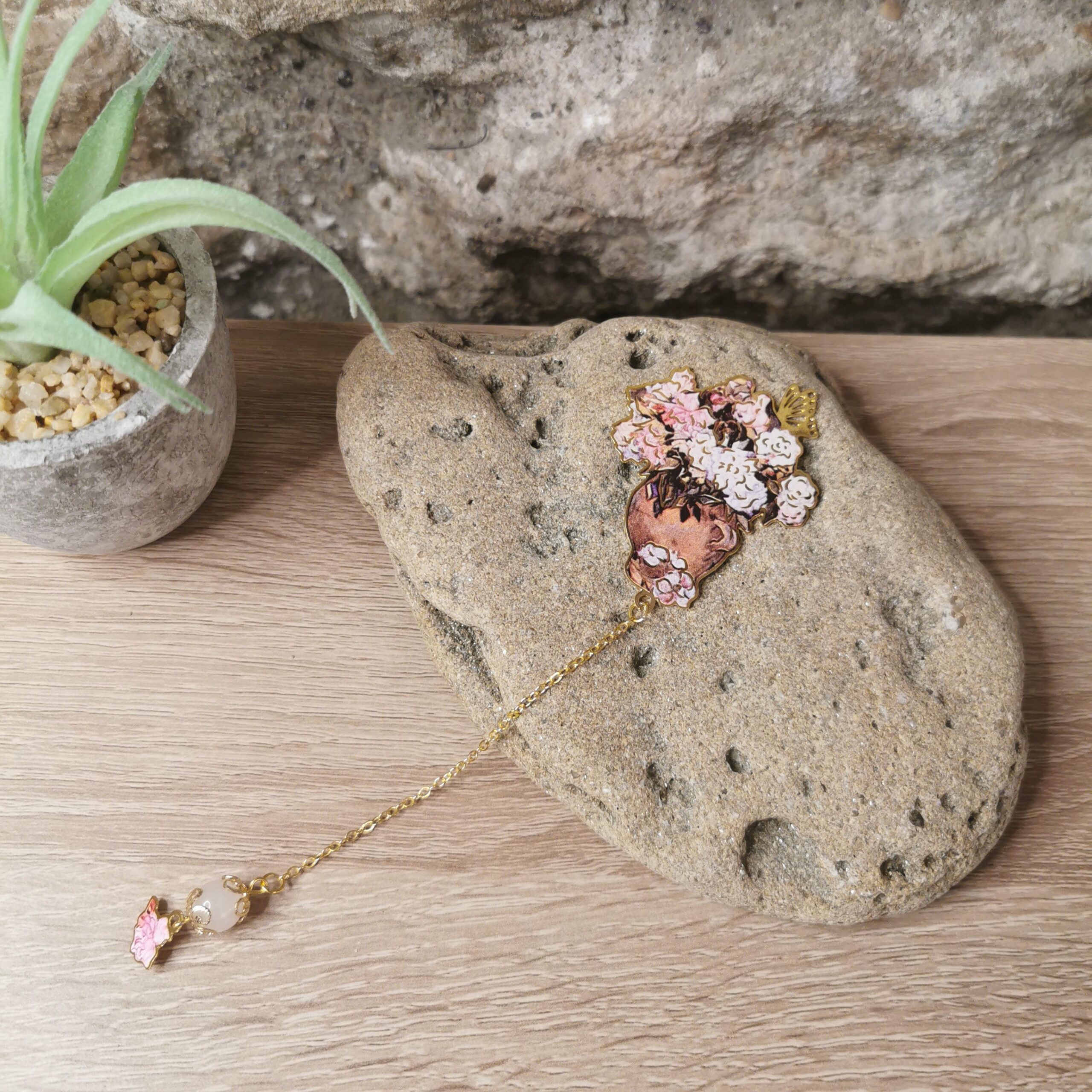 Quartz rose et son bouquet marque-pages